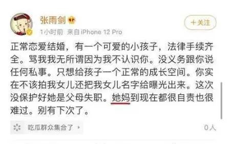 去年3月,有媒体拍到张雨剑的女儿,张雨剑在微博承认与吴倩结婚生女,发文对吴倩的称呼为“孩子他妈”。还不到一年,俩人就官宣离婚。