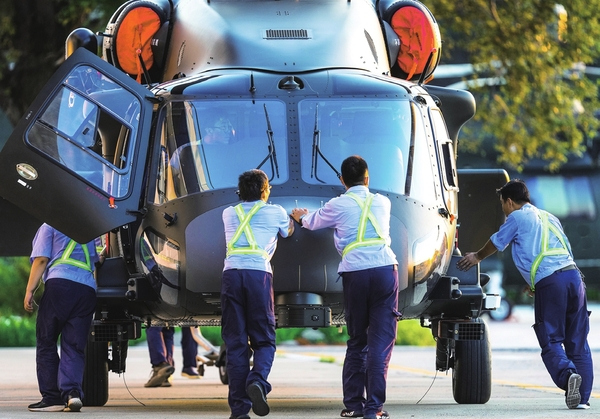 清晨7点,当我们走进航空工业哈飞试飞站时,眼前已是一片忙碌景象。熟悉的塔台、机库、跑道和停机坪,紧张有序的氛围里透着齐心向上的一股冲劲儿——远处的驱鸟车在机场联络道间来回穿梭;气象、消防、救护等保障岗位已准备就绪,随时待命;加油车、启动电源车正在为即将放飞的直升机加油上电;负责飞行保障的机务们手拿检查清单,在机舱内外仔细进行着航前准备……检查、复检、签字、确认,一套动作行云流水,利落畅快。