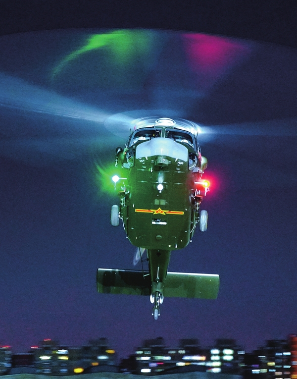 晚上8点半,机库顶端一排大灯亮起,迎接着夜航的直升机编队披星归来。当充满仪式感的红色信号弹打出,一天的飞行到此结束。但对试飞站来说,忙碌的航后检查、维修,以及明日的预航才刚刚开始。此时的飞行准备室里灯火通明,各岗位工作人员还在汇报沟通着当日飞行情况……
