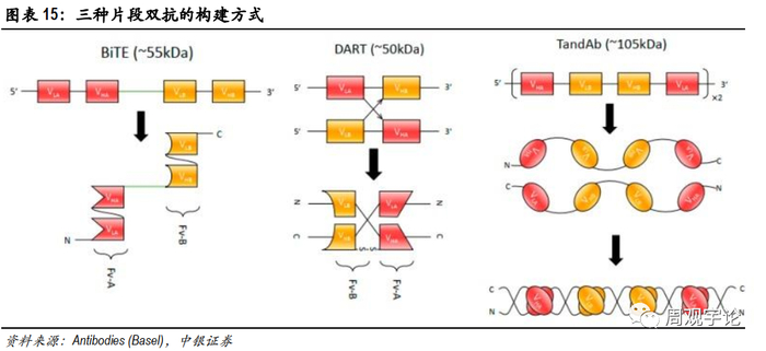 目前片段双抗主要包括3种形式:BiTE、DART和TandAbs。