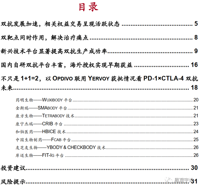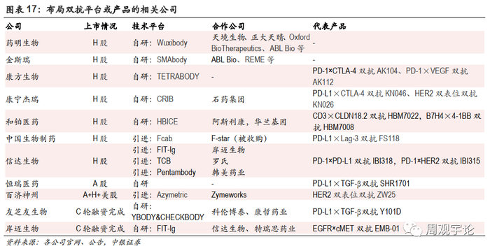 双抗难点在于如何解决双抗不同链错配的问题,目前开发的各种平台主要通过不同的结构设计来解决该难点。建议关注已经拥有双抗技术平台的公司,如药明生物、金斯瑞、康方生物、康宁杰瑞、和铂医药、中国生物制药。