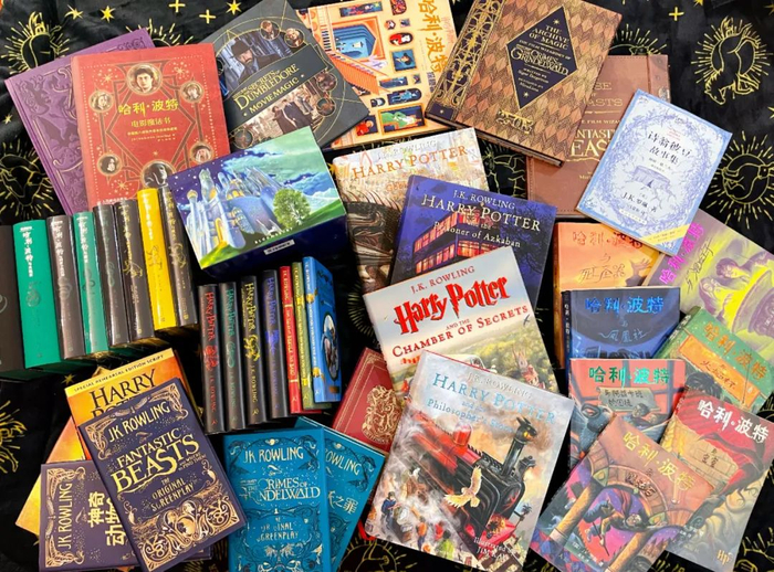 不过,这并不能阻止粉丝们的热情。除了海外代购周边,他们会收集所有版本的书籍,包括原著小说和衍生的设定书等等。