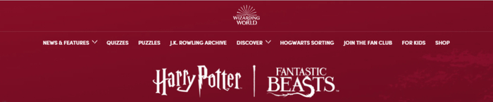 如今的网站标有“哈利·波特”和“神奇动物”两个logo。/WizardingWorld