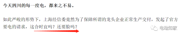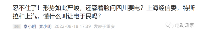 有知名自媒体更是“忍不住了!形势如此严峻,还舔着脸问四川要电?上海经信委,特斯拉和上汽,懂什么叫让电于民吗?”