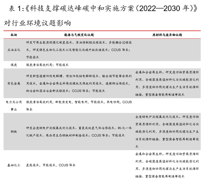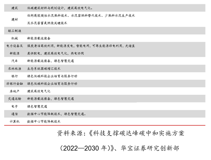 8月18日科技部等九部门印发《科技支撑碳达峰碳中和实施方案(2022—2030年)》。方案提及十方面行动及重点内容,其中: