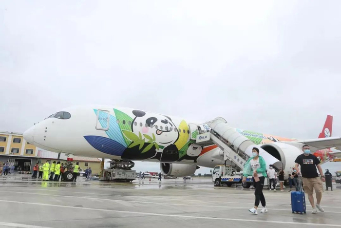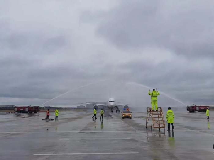 8月19日10时30分,四川航空首架熊猫涂装的A350-900客机平稳降落哈尔滨太平国际机场,执行川航3U8471航班从成都飞抵哈尔滨。哈机场以民航最高礼仪“过水门”仪式迎接A350“首秀”哈尔滨。这是哈尔滨机场首次成功保障A350-900飞机运营,为开通更多国际航线特别是洲际航线奠定了基础。