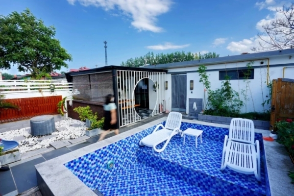 全媒体记者:杜楠 李铎 方竞凯 摄影报道)孩子在院内游泳池玩水,大人在一旁烤肉串儿,满院的笑声,扑鼻的香气……8月15日下午,北戴河区海滨镇丁庄村栖山语海民宿内,来自河南的游客郭先生一家,玩得特别开心。