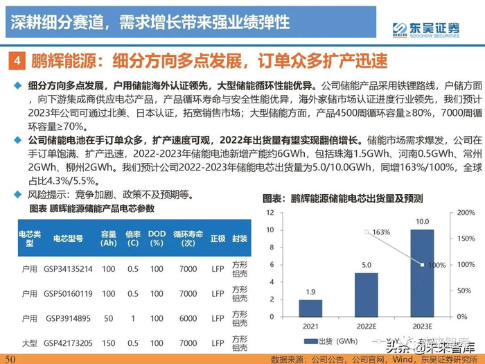 4鹏辉能源:细分方向多点发展,订单众多扩产迅速