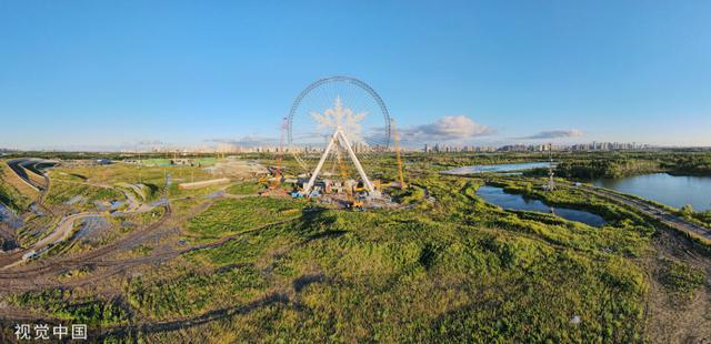 哈尔滨:120米高摩天轮亮相江畔 6瓣“雪花”已装完5瓣