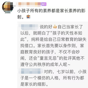 高铁车厢属于公共场所,乘客必须遵守秩序规范。家长文明素养的欠缺、个人自由与公共利益之间界限意识的缺乏,均暴露无遗。涉事家长的“大撒把”式监护更令人气愤,给孩子未来成长带来的负面影响不容小觑。