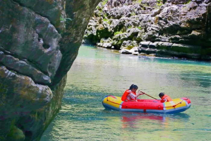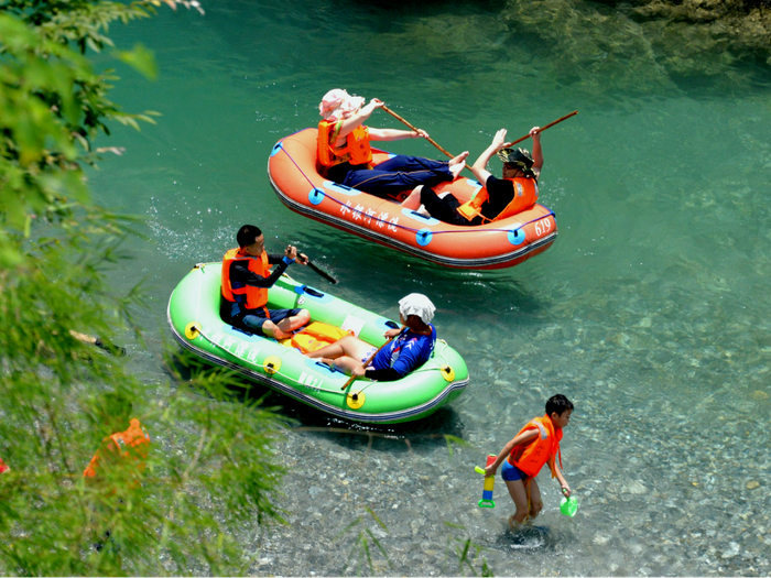 在水银河漂流,漂程约5公里,绝大部分漂程都不会被暴晒,激流缓滩交替更迭,大部分水深1米到2米,难度适中,老少皆宜。