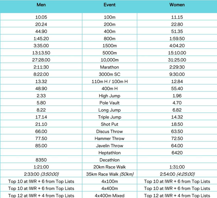 不同项目的达标期有所有所区别。其中,马拉松和35公里竞走项目的达标期为2021年12月1日至2023年5月30日;10000米、20公里竞走和全能项目的达标期则为2022年1月31日至2023年7月30日;其他项目的达标窗口自2022年7月31日开始,至2023年7月30日结束。这便意味着所有项目运动员的“门票”争夺战目前都已经开始。