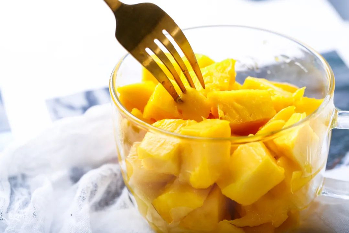 凯特芒果肉金黄,非常诱人,厚实却非常滑嫩,轻咬一口就软化成汁,甜软与醇香激荡着舌尖,“滋溜”一下滑入喉咙,浓郁的清香果味流窜在胸腔,香甜的果肉瞬间滑进肚子。