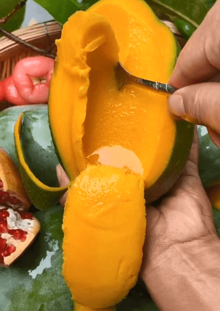 皮薄肉厚的凯特芒,汁水非常丰盈,从剥皮的时候就开始流汁,让你的第一反应不是想咬,而是想吸吮它的汁水。