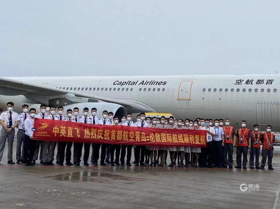 中英定期客运航班复航后首个回国航班落地青岛,首都航空执飞