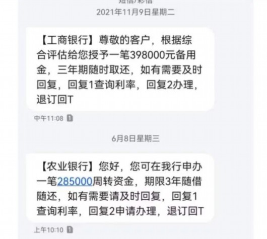 “我接到过太多类似的短信了,农业银行的、工商银行的、建设银行的,全都有。这些短信大多内容相同,都是说我可以申请资金,有30万的,有60万的,只要回复个数字,就能申请或者查利率,有一天闲着没事,就随手回了一个。”