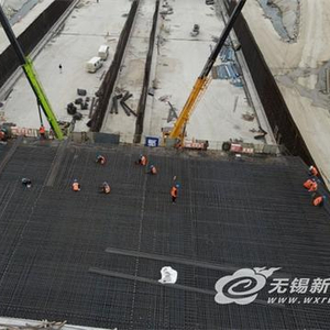 上午8时多,驱车从宜马快速通道陆域敞开段进入已完成主体结构施工的部分隧道,从5号仓口出来时,记者的眼镜立刻蒙上一层雾气,足见隧道内外温差之大。放眼望去,已完成回水的隧道主体1号至5号仓已潜入湖底,从6号仓起破湖而出,往宜兴方向延伸;竺山湖中央,工人和台车、运输车、吊车,交织成一幅施工大干的火热画面。