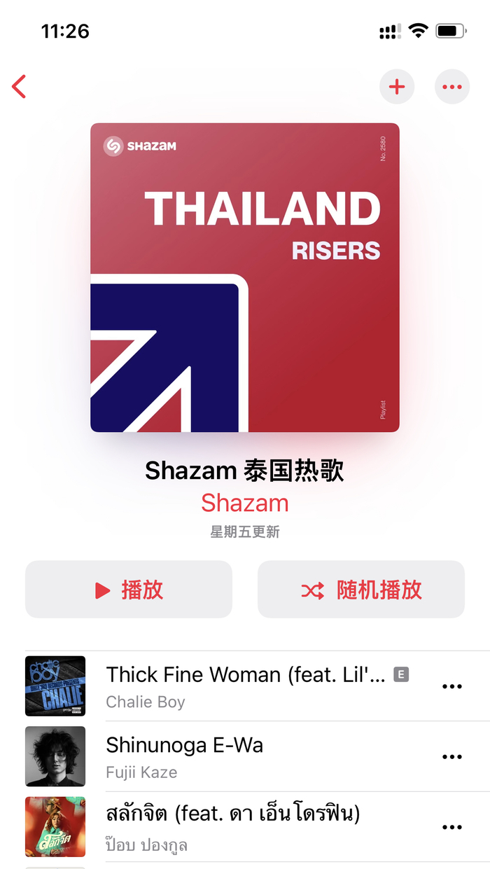 同样在Apple Music内,也包含了Shazam的特定歌单,例如“Shazam泰国热歌”、“Shazam舞曲热歌”等等歌单。当Shazam每月识别曲目超过10亿次、具备了大量数据支撑,再通过音乐编辑们的专业审核后,这些专题歌单都可以作为了解特定地区或风格的快速途径。