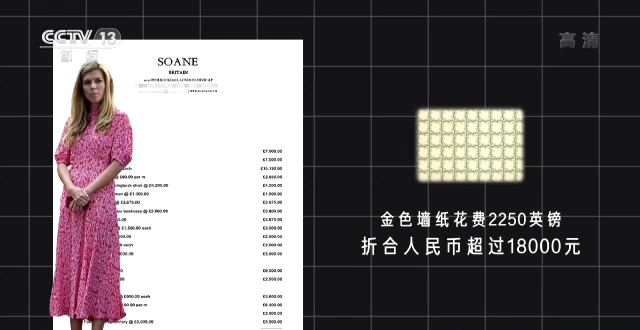 在这份清单中,约翰逊的妻子凯莉·西蒙兹为购买金色墙纸花费2250英镑,折合人民币超过18000元;一个饮料推车花费3675英镑,折合人民币近3万元;两盏壁灯共花费3550英镑,折合人民币超过28000元。整个清单总计费用208104英镑,折合人民币约168万元。