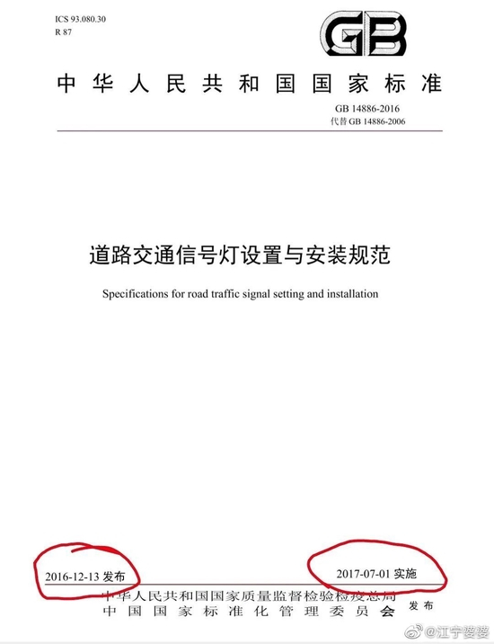 新国标红绿灯不新,其设计依据《道路交通信号灯设置与安装规范》在2017年就开始实施了。