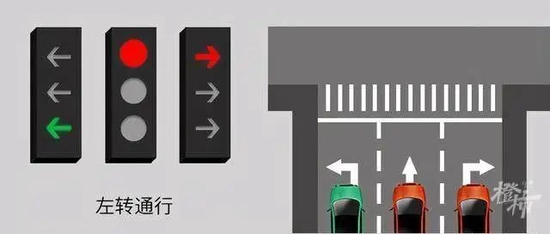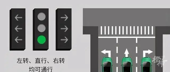 相比之前的红绿灯,新国标的红绿灯,将原来的三个箭头灯改成了两个方向指示灯和一个圆盘灯,并且两者不同时亮绿灯。