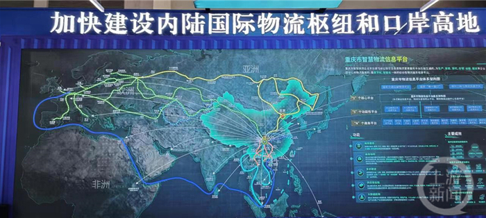重庆市人民政府口岸和物流办公室展厅以“智慧物流暨数字通道”为主题,主要展示“重庆围绕智慧物流发展,积极建设智慧通道、智慧口岸、智慧平台,着力实现通道智能化、通关便利化、平台融合化,以智能化、绿色化、集约化牵引重庆口岸物流高质量发展”有关情况,具体包括大屏展示智慧物流赋能重庆出海出境大通道建设、智慧物流助力重庆充分发挥“一带一路”和长江经济带联结点作用、中国(重庆)国际贸易单一窗口等。