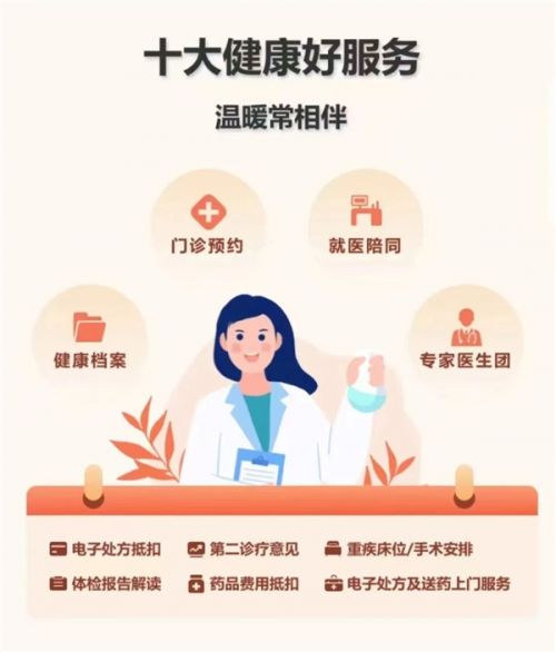 参保人可享有包括门诊预约、就医陪同、重疾床位及手术安排、专家医生团、线上购药享8折等十大健康增值服务,健康有保障,安心护全家。