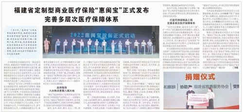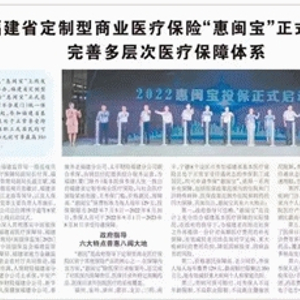 今年7月由中国银保监会福建监管局、福建省医疗保障局、福建省地方金融监督管理局、福建省农业农村厅共同推动,福建省保险行业协会协调,联合人保财险福建省分公司、中国人寿福建省分公司等8家保险公司,为福建基本医保参保人共同推出一份针对福建地区定制型的商业医疗保险。