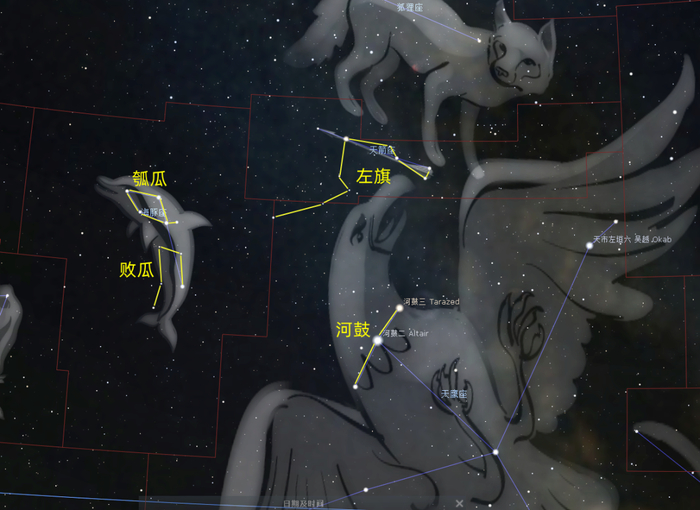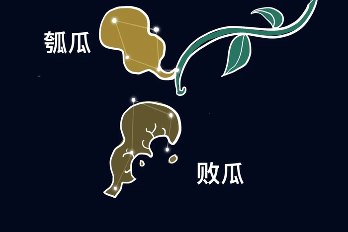在西方,它是形象的海豚座,而在东方,它被一拆为二,一个叫瓠(hù)瓜,一个叫败瓜。瓠瓜原指一种葫芦,这里泛指果实。败瓜就是指败坏的瓜。
