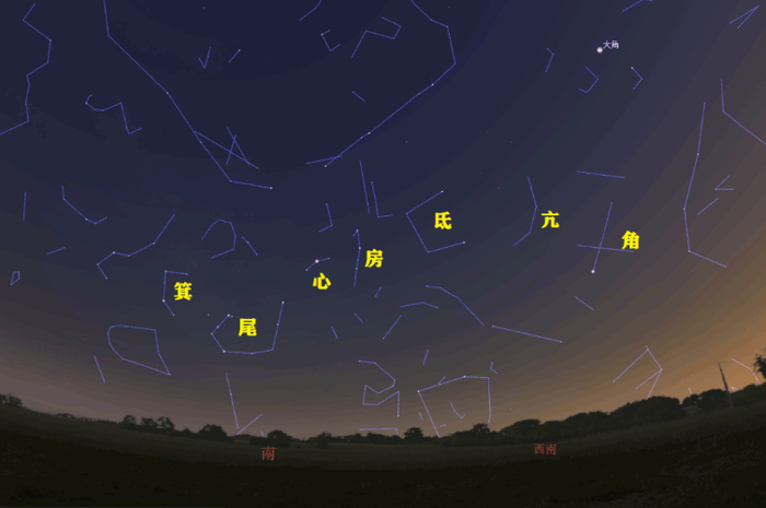 5.下图中苍龙七宿高挂南天,请问《周易》乾卦中哪句爻辞描写的正是这一天象?(10分)
