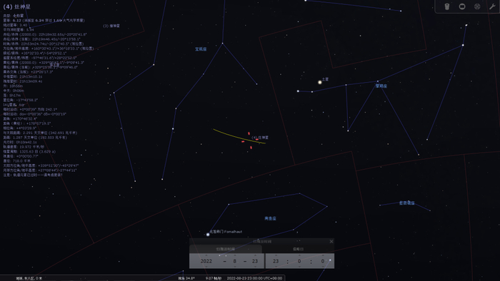 2022年8月23日晚灶神星位置