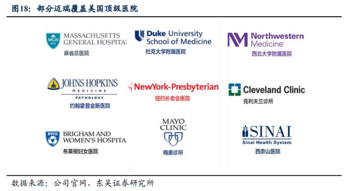 具体项目上,迈瑞医疗在北美突破的高端客户群代表包括波普勒布拉夫区域医疗中心、白杨布拉夫地区医疗中心、卢瑟福地区卫生系统、威克梅德卡里医院等。
