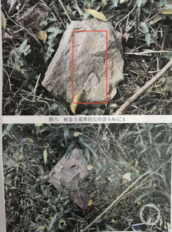 2018年6月,苏州警方在横山山顶发现被盗古墓附近的石头上有箭头标记。苏州警方 图