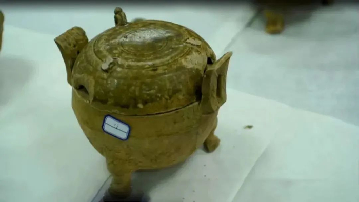 龙塘的水被迅速抽干,在清理塘底淤泥过程中,一些已经腐朽破损的器物,不断地被清理出来。考古队不情愿地接受了残酷的事实:这个墓有20米深,但是挖了差不多有一两米深的时候,就已经出现了汉代文物,还有唐代和宋代文物,说明了至少在唐代和宋代,这个地方就已经被盗过了。”