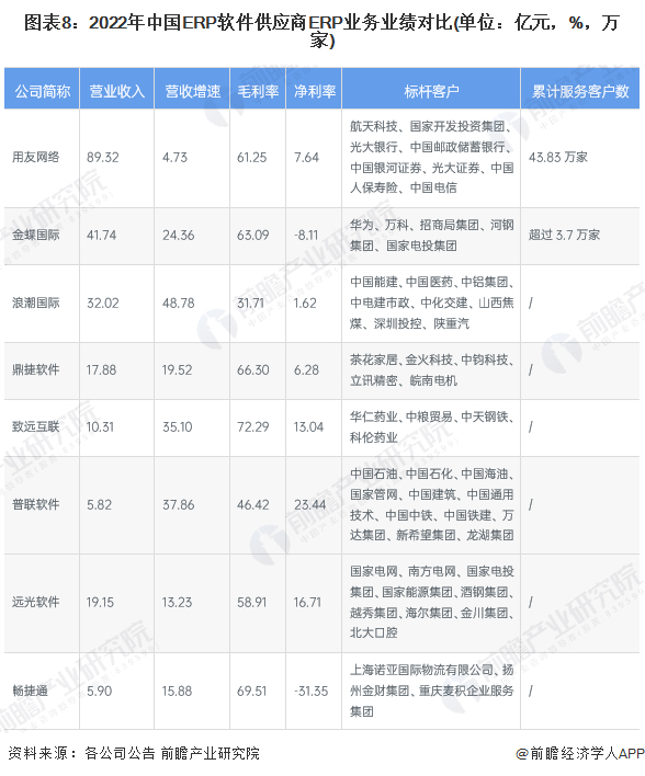 本文核心数据:2022年中国ERP软件行业上市公司汇总、营业收入、业务占比、毛/净利率、标杆客户