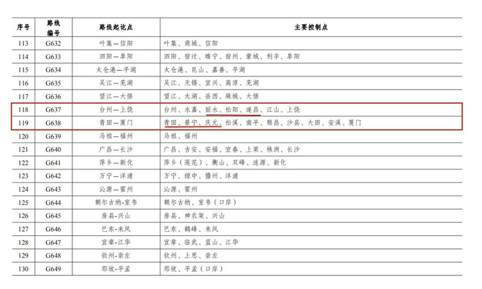 G638青田-厦门公路