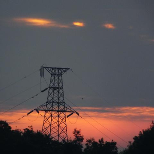 7月2日,湖北宜昌,日出时分,晨光中的电网。图/ic