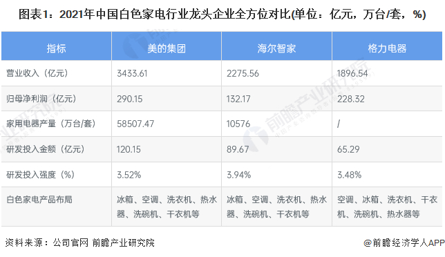 1、中国白色家电行业龙头企业全方位对比