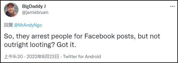 这个视频被分享到推特、Snapchat等社交媒体平台,引发多地网友关注,美国保守派作者安迪·恩戈(Andy Ngo)分享的推特底下评论尤为多。