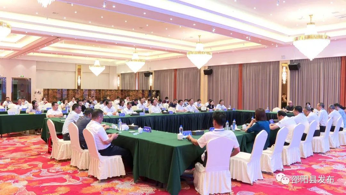 8月21日,邵阳县举行天子湖文化旅游项目推荐与洽谈会暨签约仪式,本次签约共有两个项目,总投资额超3亿元。省文旅厅一级巡视员王超祥,县委书记袁胜良,县委副书记、县长周玉祥,县政协主席唐军良,县委常委、宣传部部长彭茂华,湖南省乡村文化旅游促进会会长、大汉控股集团党委书记、董事长付胜龙,中惠旅智慧景区管理股份有限公司董事长盛建华,上海晟牛信息技术有限公司董事长吴晓东,湖南华兴实业公司董事长向长江出席会议并见证签约。
