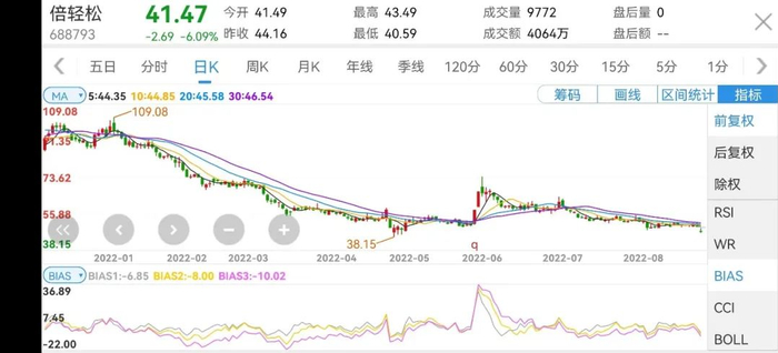 不过,公司的高光时刻,也就定格在了这一刻。此后的一年内,公司股价持续震荡下行。昨日,公司股价收报于41.47元/股,跌6.09%,总市值25.56亿元。短短一年内,市值已蒸发超过7成,马学军的个人才缩水至10亿元。
