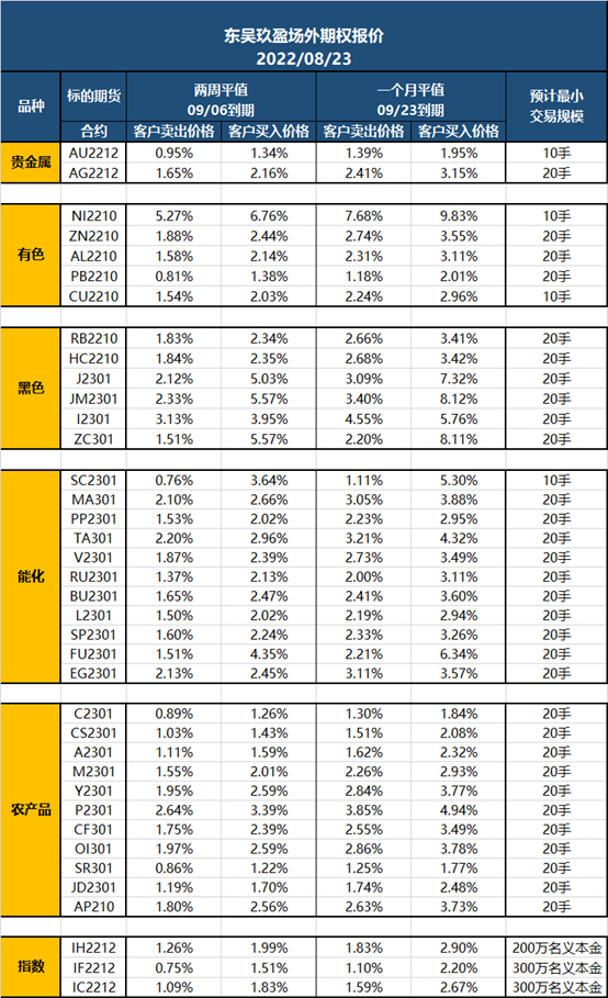 东吴期货|东吴玖盈场外期权报价2022/08/23