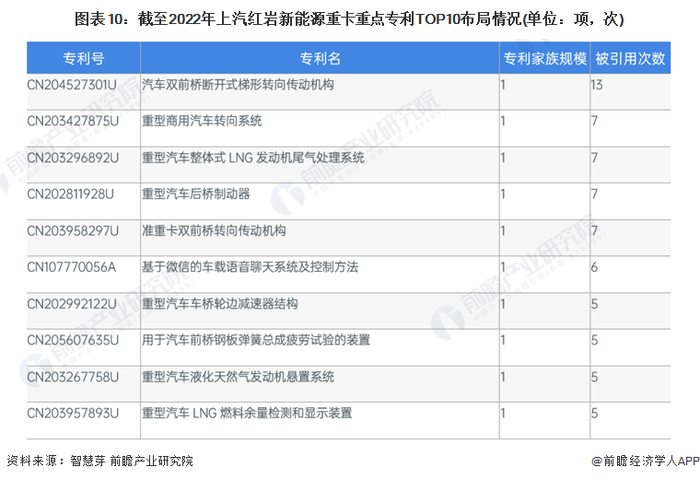 (6)重点专利布局对比:上汽红岩专利整体被引用数量较多