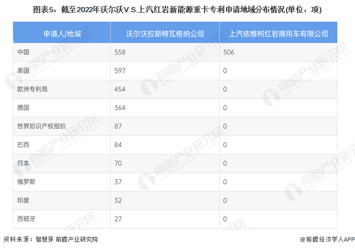 (3)专利申请地域对比:沃尔沃集中在欧美,上汽红岩集中在中国