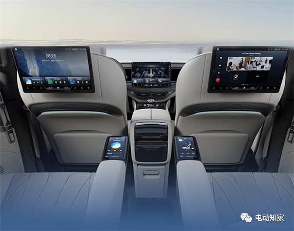 新车采用2+2+3的7座布局,主驾座椅支持12向电动调节,支持通风、加热、记忆功能,中排标配航空座椅、10向电动调节,拥有电动腿托、大角度背靠,座椅扶手上带有独立液晶屏,可控制座椅和多媒体,第三排座椅腿部空间最大980mm。
