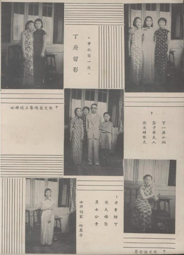 10月,“本月七日,为丁先生诞辰,是夜至友廿馀人醵资治盛筵,为丁先生寿,而名歌史翁玉瑛女士,亦于是夜拜丁氏夫妇膝下,参加道贺者,……有(余)空我、过宜、梯维、(王)雪尘、翼华、(邵)茜萍、伯乐、(李)在田、培林、(宋)玉狸诸君子,而寿翁丁先生,料能于酒酣耳热时,亦将吊一段谭派正宗。女宾之加入者,亦多今日驰誉歌坛之骄子,玉瑛歌青衣,有声白下,其姊氏鸿声,以唱须生蜚声京国,亦将于是日同临,更有云霞、文娟、(谢)韵秋、雪琴诸人,张连生、姜竹清二君,怀胡索绝技,当以琴弦委之二君。……人数三桌,摆满丁家之客厅与天井矣。”(《东方日报·随笔》)