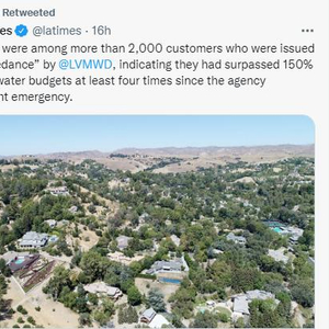 在洛杉矶郊外、好莱坞以西的圣费尔南多山谷地区,隐山市与卡拉巴萨斯市是两大明星豪宅聚集区。报道称,该地区是加州“用水量最大的地方之一”,2021年平均每人每天用水205加仑(约合776升)。