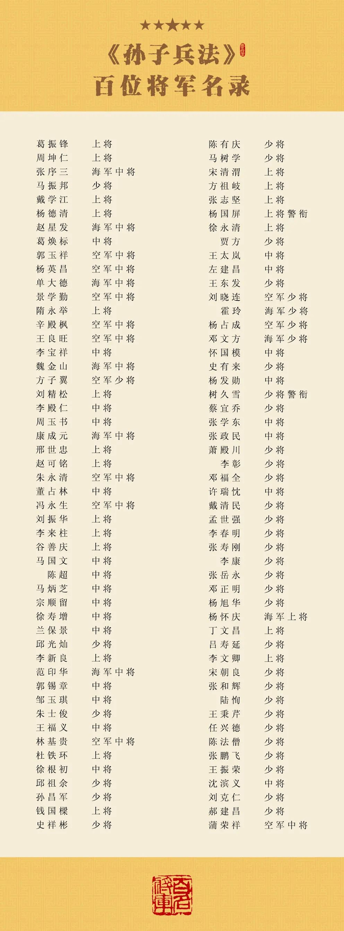 这100位将军,每位都是功勋人物。