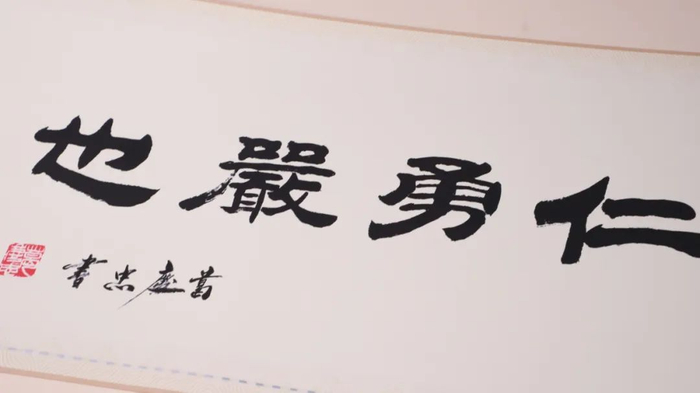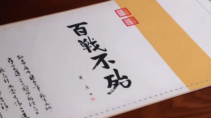 打开卷轴,能看到原国家J委副ZX亲自题跋的“百战不殆”4个字,让人浑身充满力量。