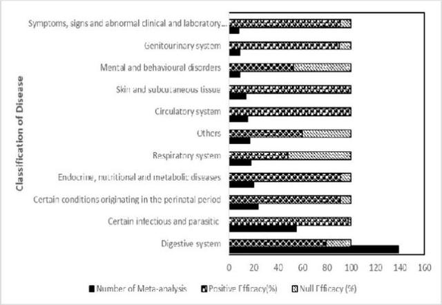 消化系统疾病:荟萃分析约140篇,有效率80%,无效率20%